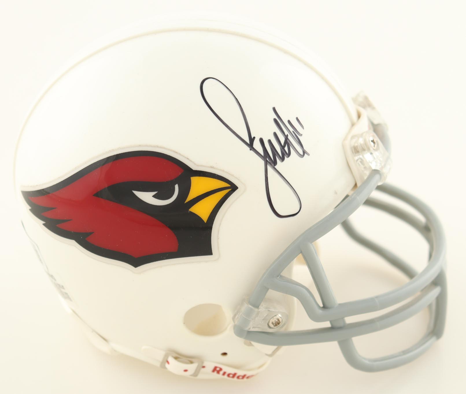 Riddell Arizona Cardinals Mini Helmet. Hand-signed by Larry Fitzgerald. Please note, there is scuffing on the helmet.