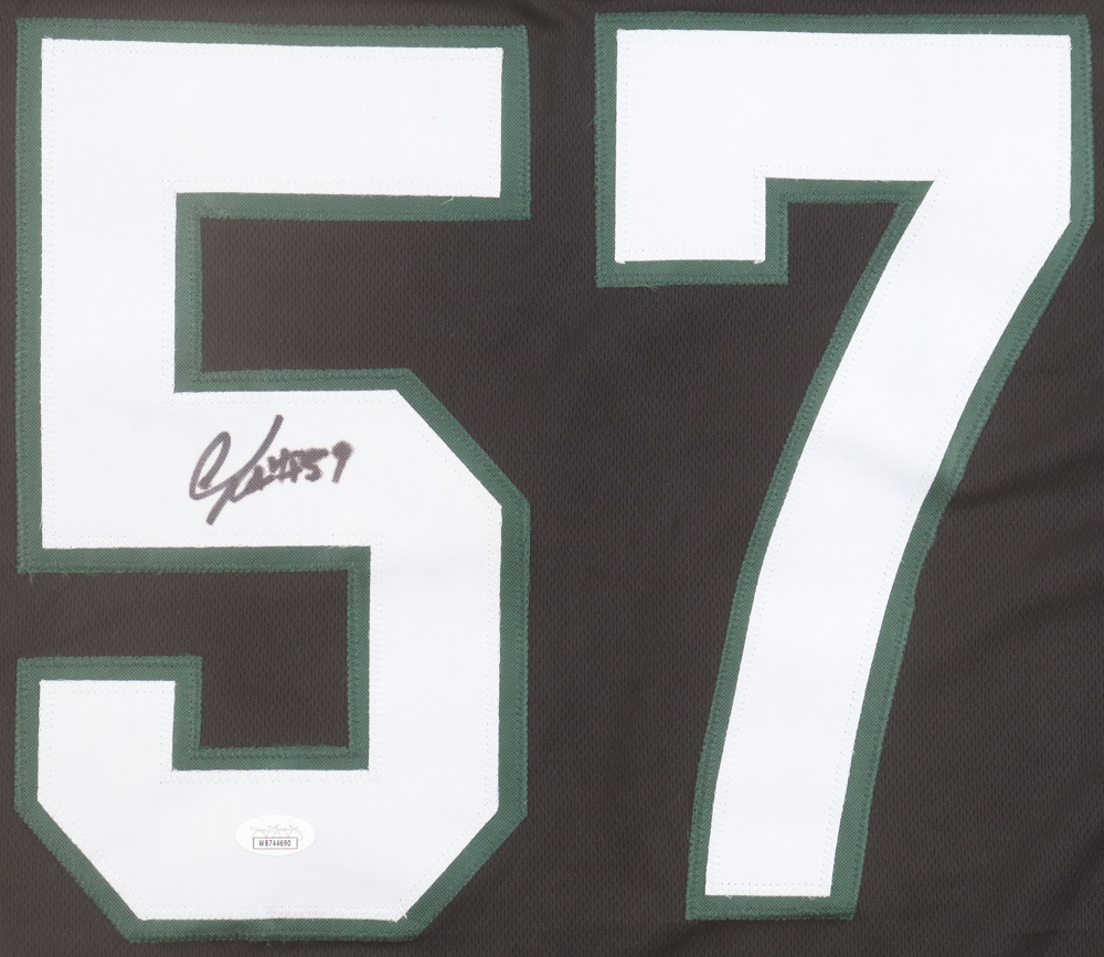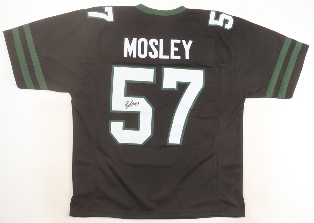 Custom jersey. Everything is sewn on, size XL. Hand-signed by C. J. Mosley.