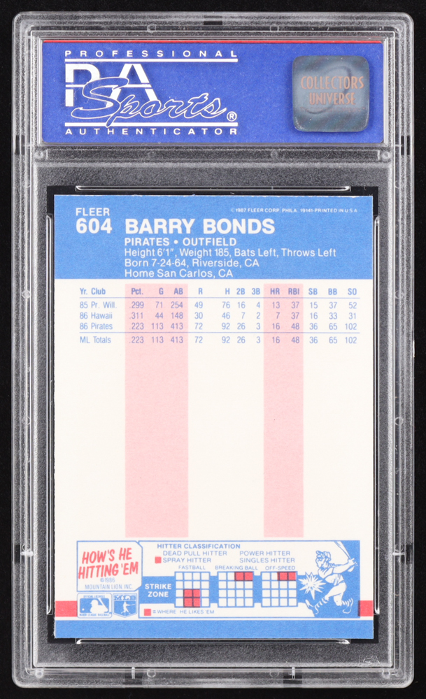 Barry Bonds 1987 Fleer #604 RC (PSA 9)
