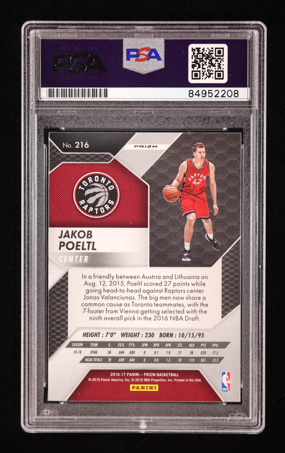 Jakob Poeltl Signed 2016-17 Panini Prizm Prizms Green #216 RC (PSA | Auto 10)