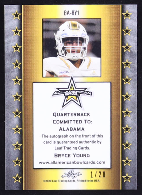 Bryce Young 2020 Leaf Metal All-American Autographs Blue #BA-BY1 RC #1/20