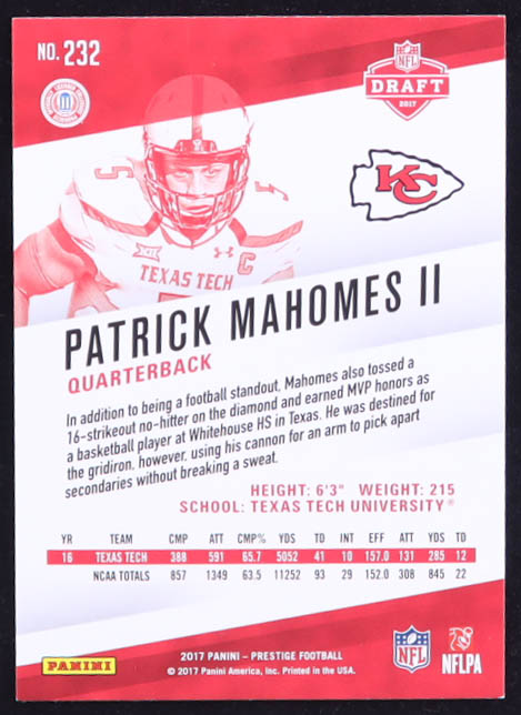 Patrick Mahomes II 2017 Prestige #232 RC