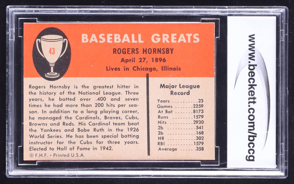 Rogers Hornsby 1961 Fleer #43 (BCCG 8)