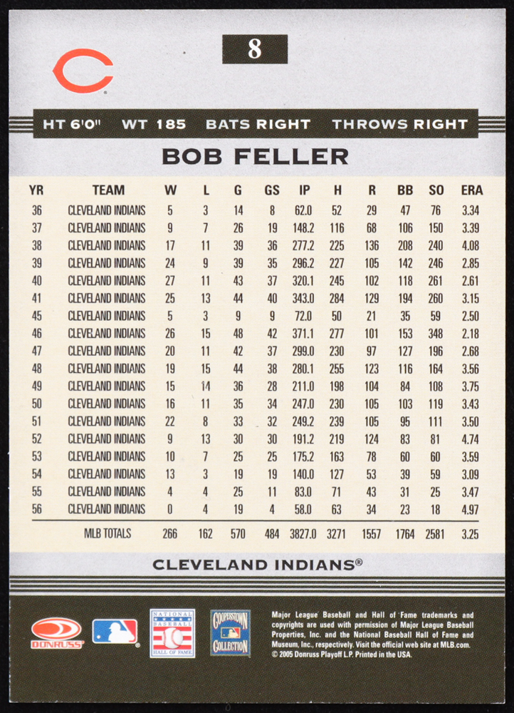 Bob Feller 2005 Donruss Greats Signature Platinum HoloFoil #8 T1