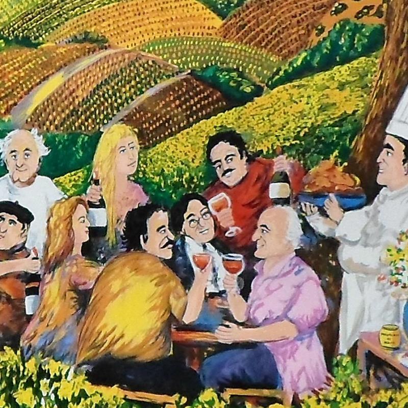 "Napa Valley Mustard Festival" is a limited edition serigraph on paper by Guy Buffet. It is numbered, hand-signed by the artist, and comes with a Certificate of Authenticity. Measures approx. 30" x 30" (image).