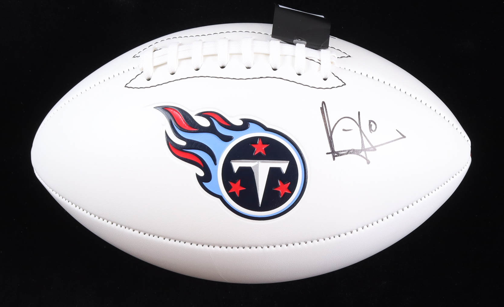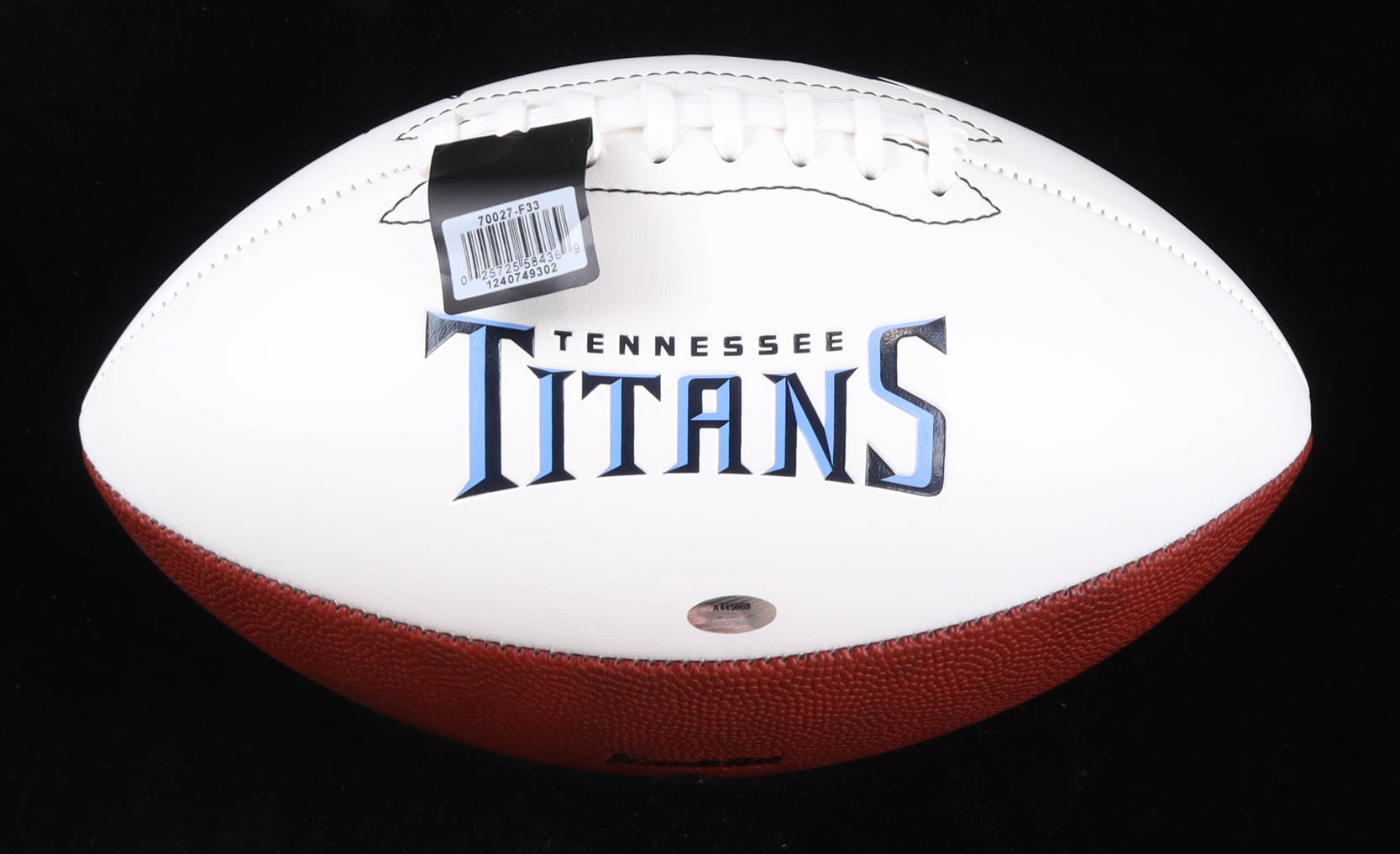 Franklin Tennessee Titans Logo Football. Hand-signed by Vince Young. Please note, there is a cut on the plain side of the football.