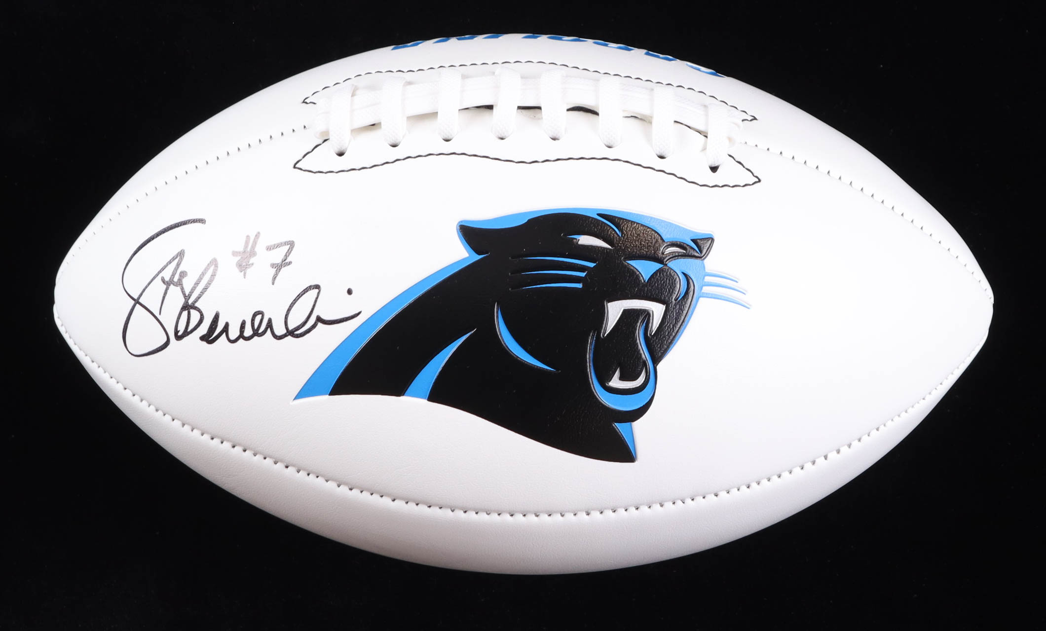 Franklin Carolina Panthers Logo Football. Hand-signed by Steve Beuerlein.