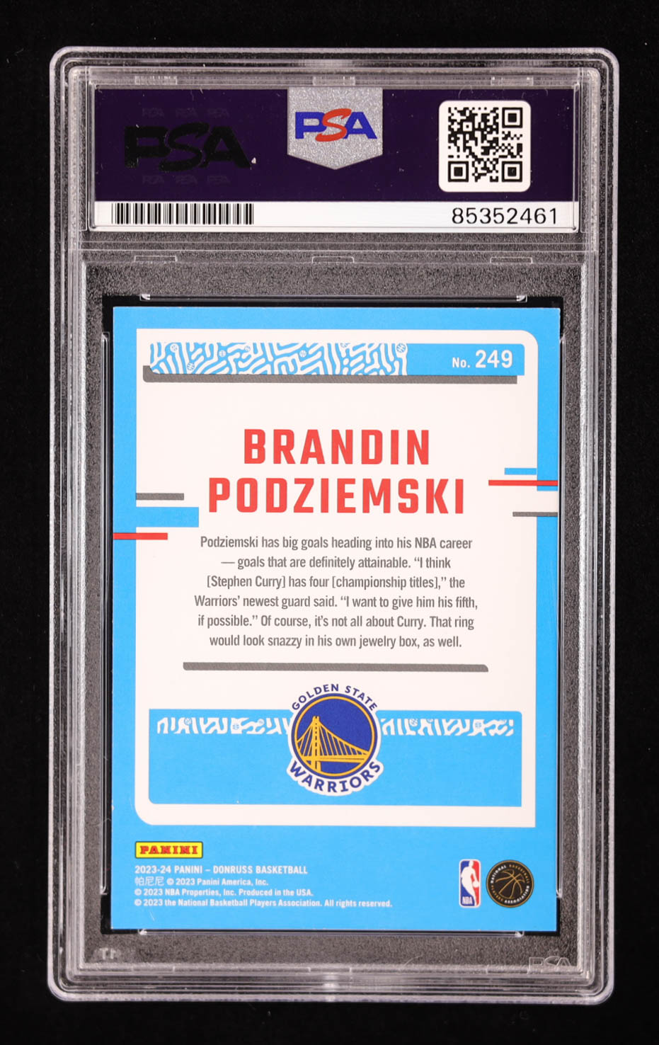 Brandin Podziemski Signed 2023-24 Donruss #249 RC (PSA)