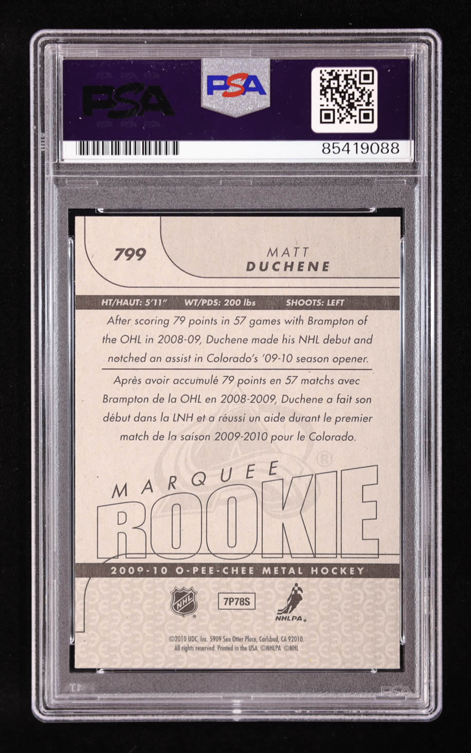 Matt Duchene Signed 2009-10 O-Pee-Chee #799 RC (PSA)