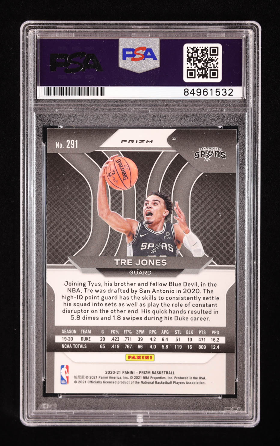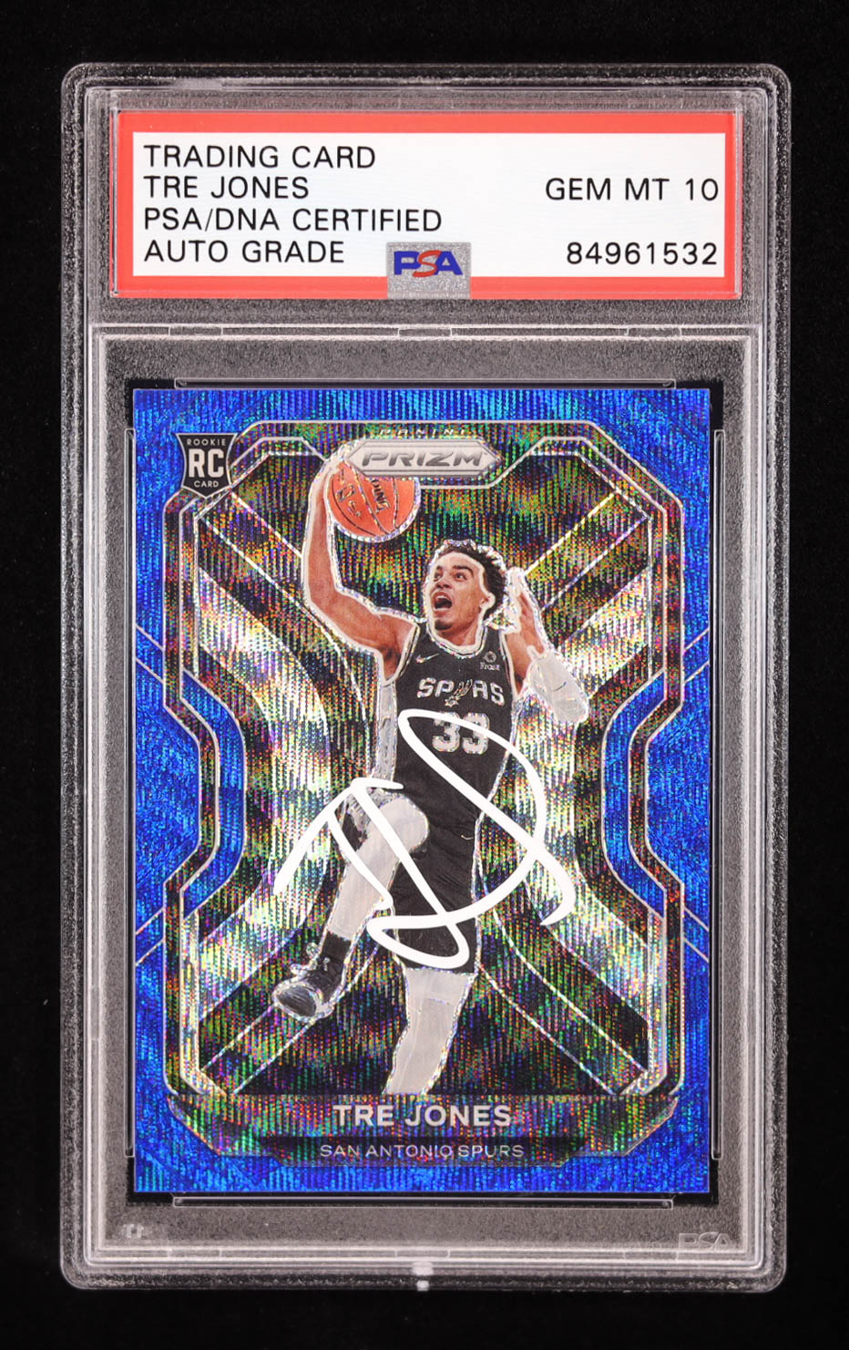 Tre Jones Signed 2020-21 Panini Prizm Blue Wave Prizm #291 RC (PSA | Auto Grade 10)