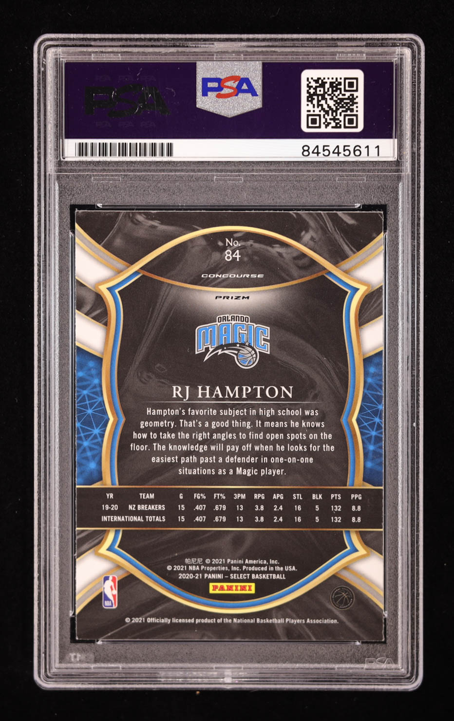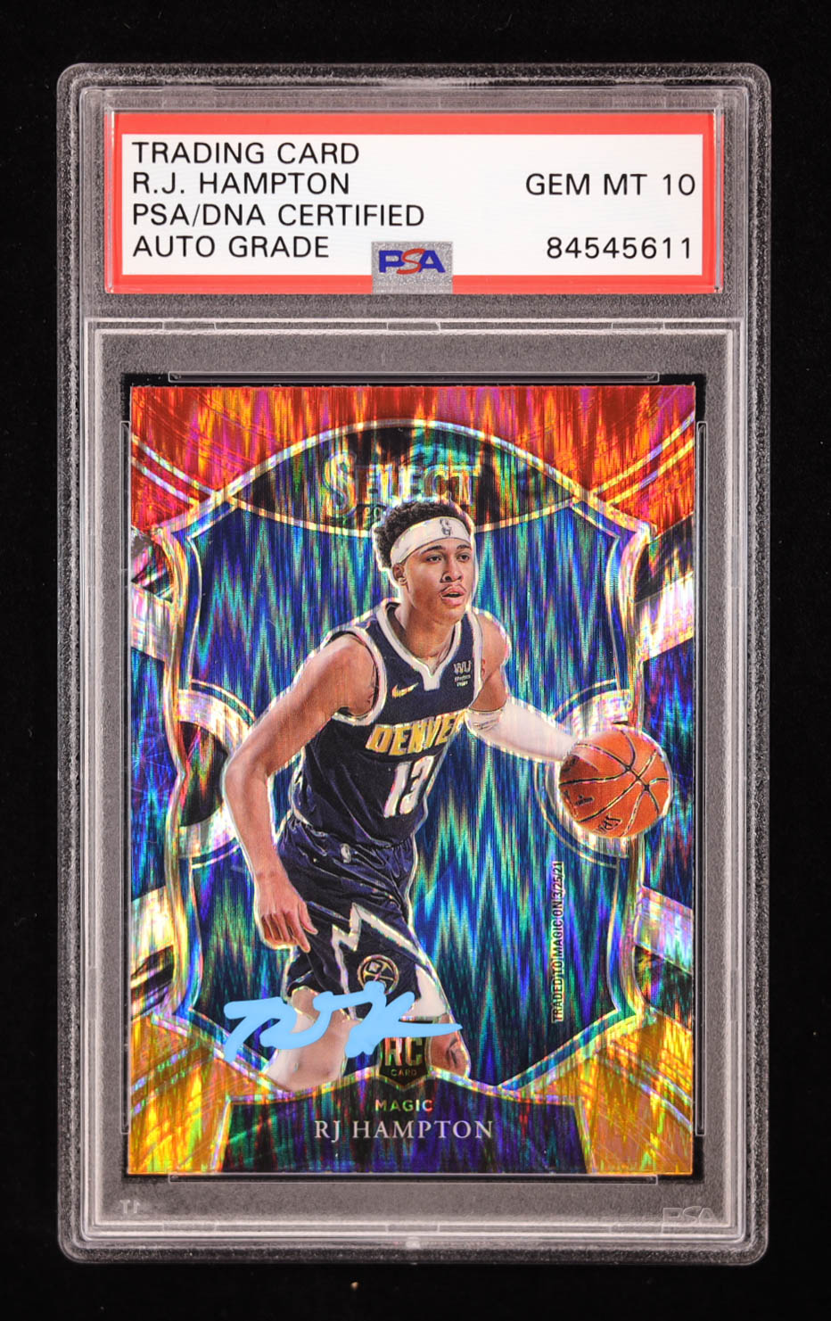 RJ Hampton Signed 2020-21 Panini Select Red, White & Orange Flash #84 RC (PSA | Auto 10)