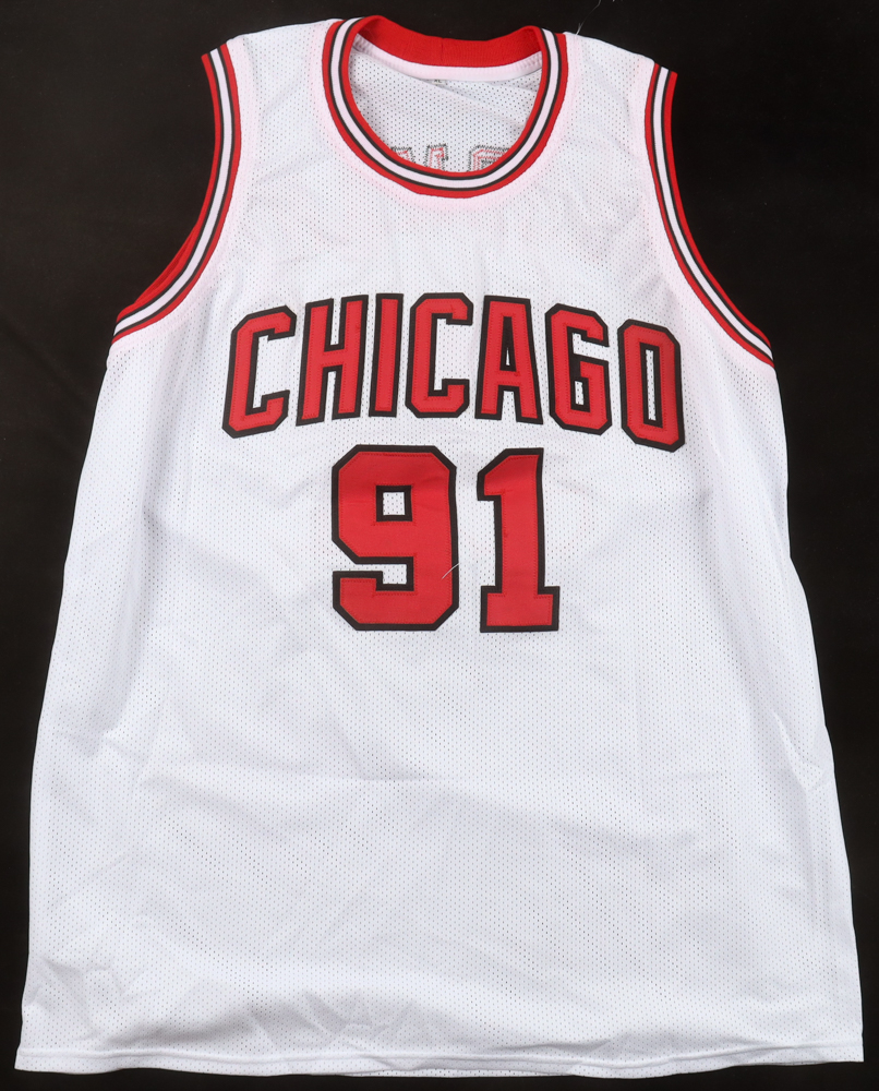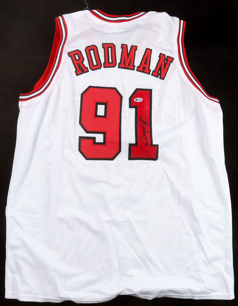 Custom jersey with everything sewn on, size XL. Has been hand-signed by Dennis Rodman (HOF).