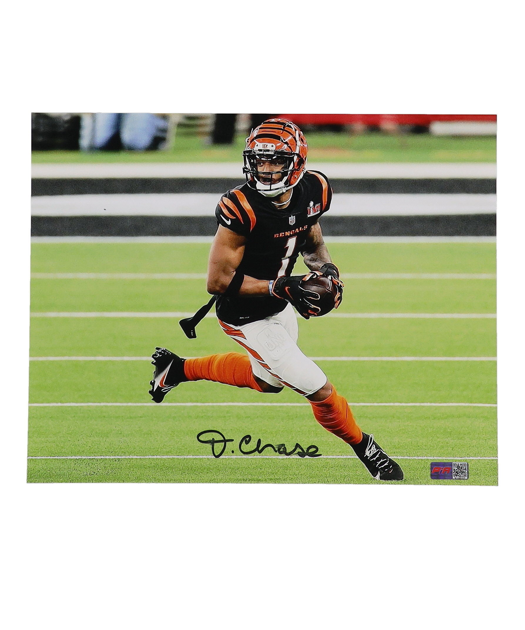Photo measures 11" x 14" in size and has been hand-signed by Ja'Marr Chase (Cincinnati Bengals).
