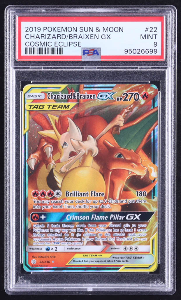 Charizard & Braixen GX 2019 Pokemon Sun and Moon Cosmic Eclipse #22 (PSA 9)