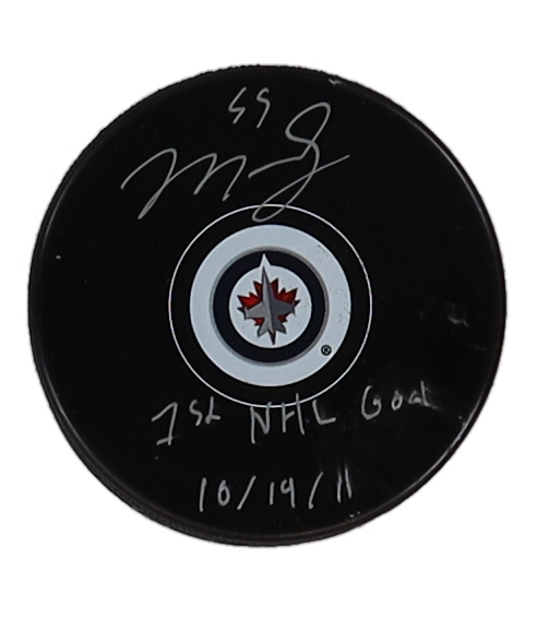 Mark Scheifele Signed Jets Logo Hockey Puck Inscribed "1st NHL Goal 10/19/11" (COJO)