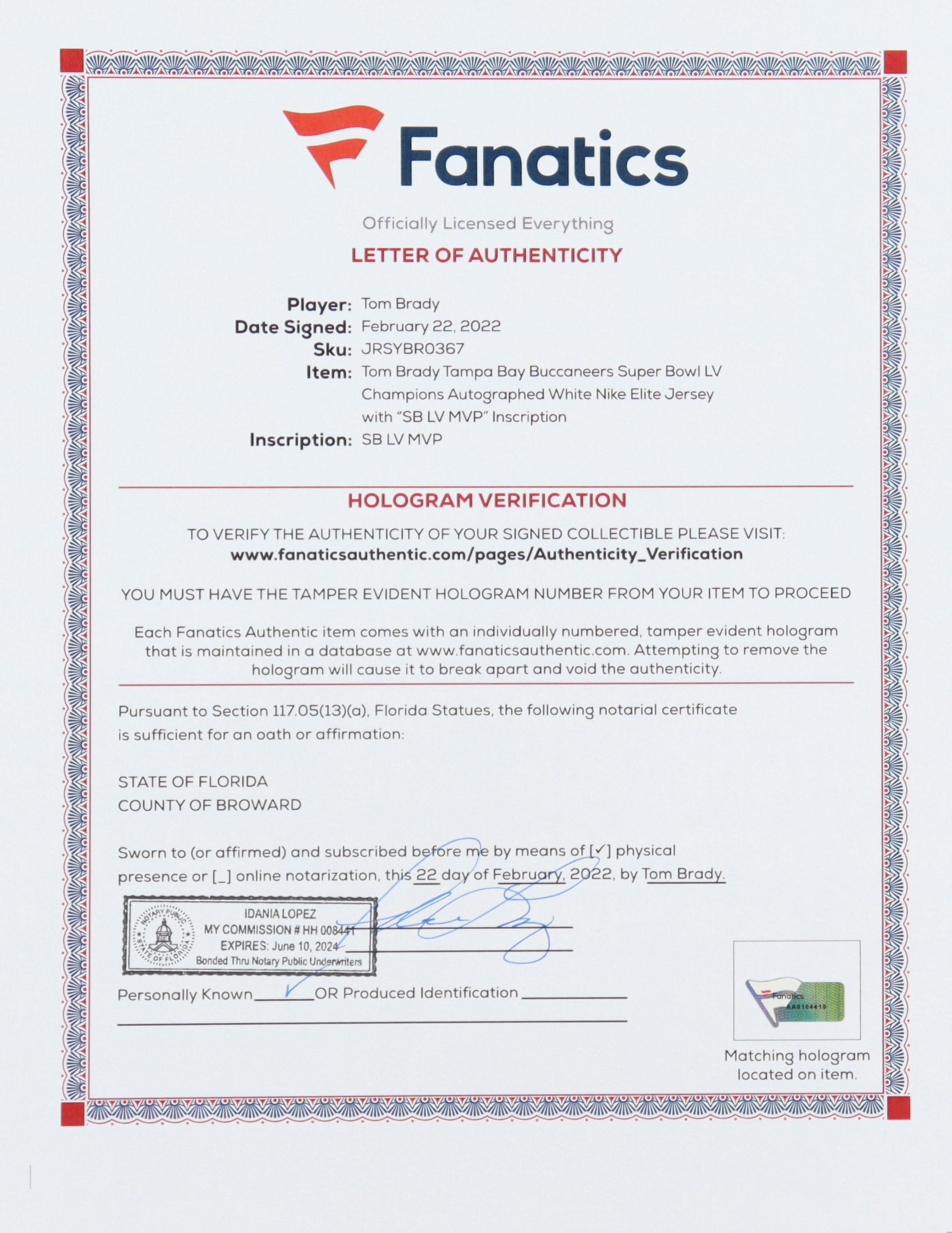 The jersey includes an official Fanatics hologram and matching LOA for authenticity purposes.