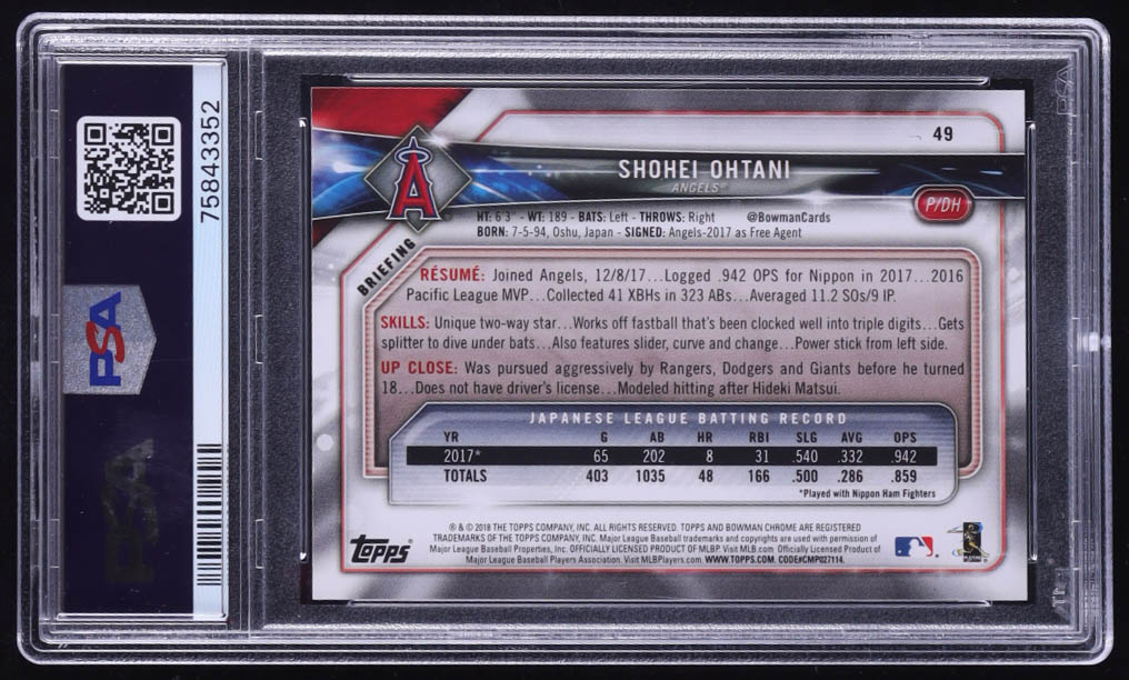 Shohei Ohtani 2018 Bowman #49 RC (PSA 10)