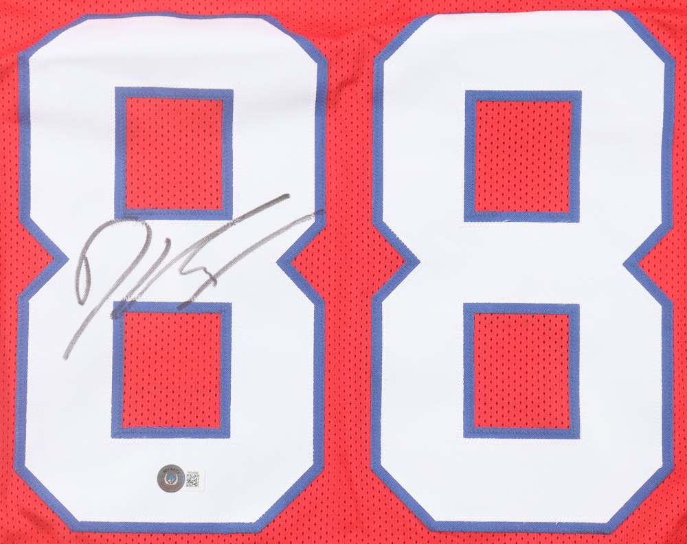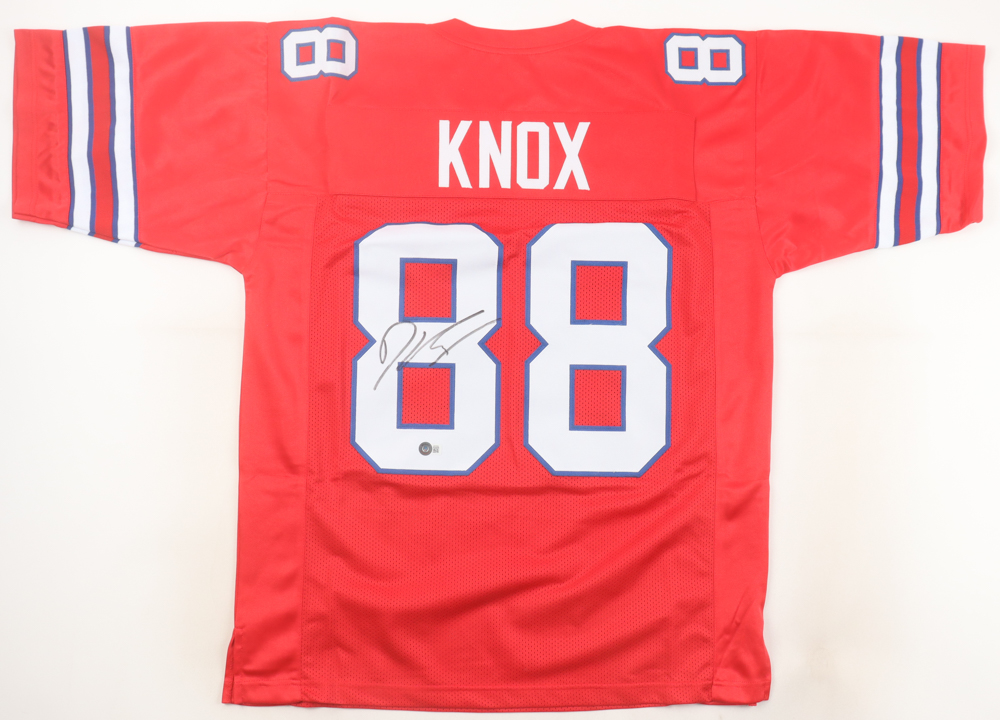 Custom jersey with everything sewn on, size XL. Hand-signed by Dawson Knox.
