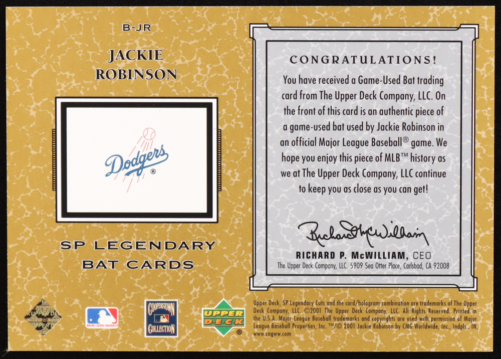 Jackie Robinson 2001 SP Legendary Cuts Game Bat #BJR SP