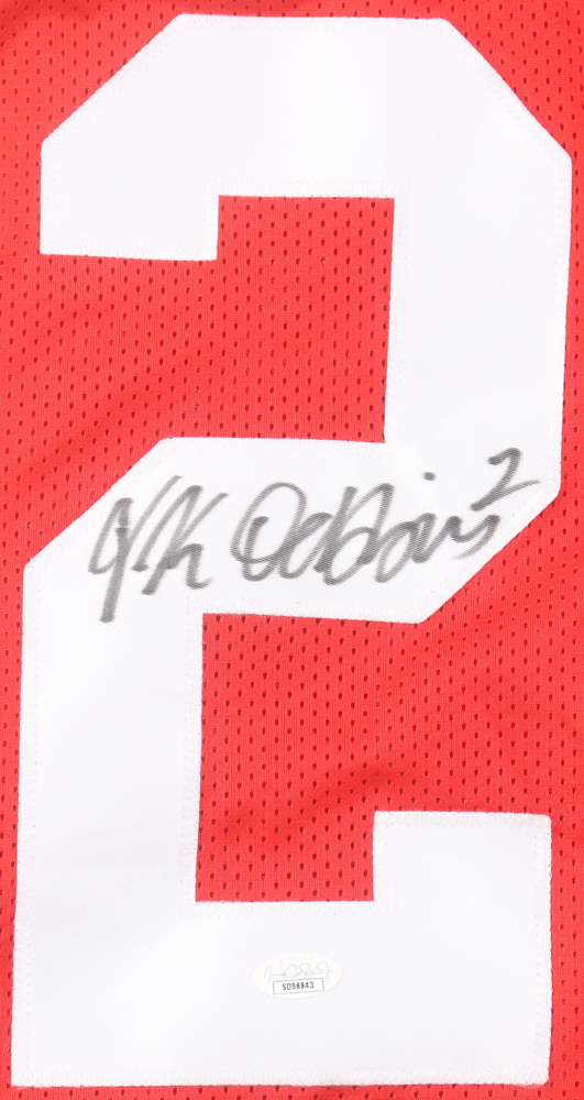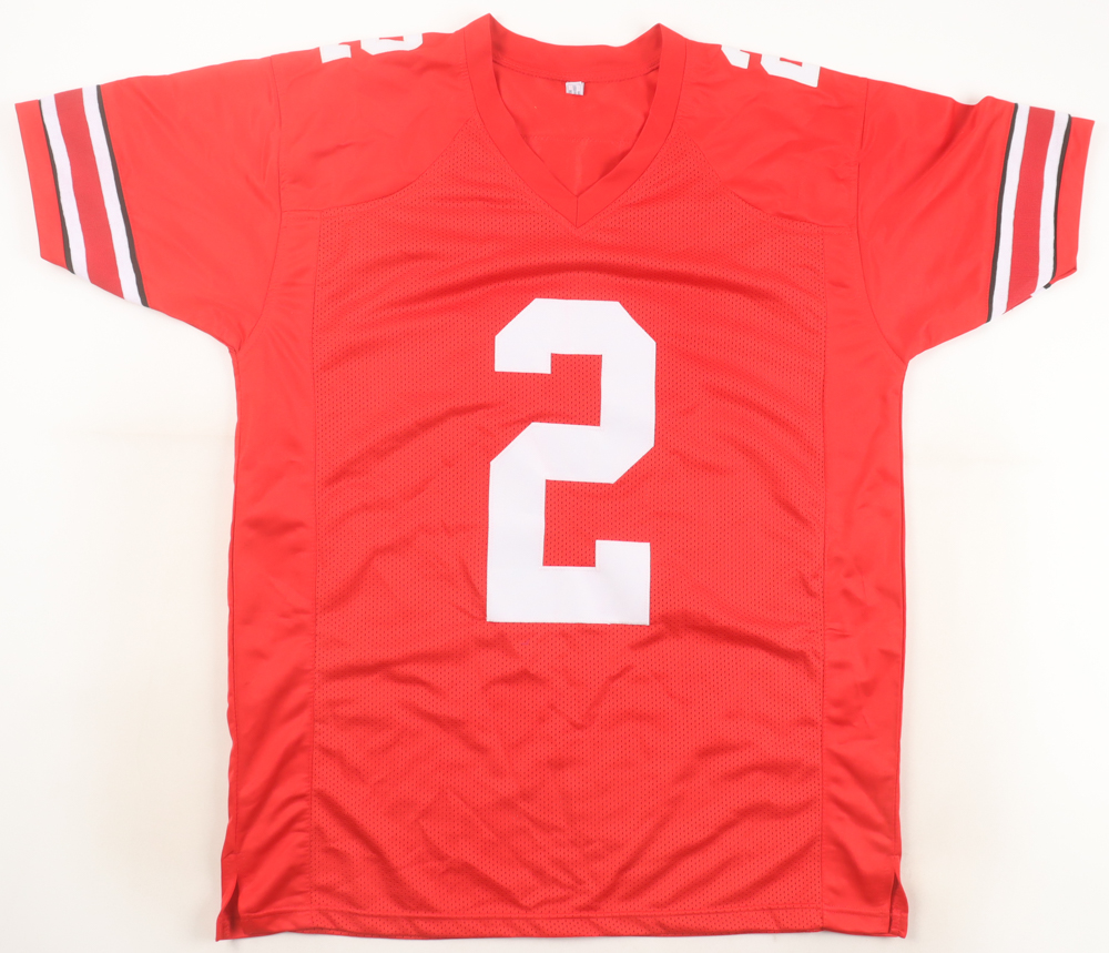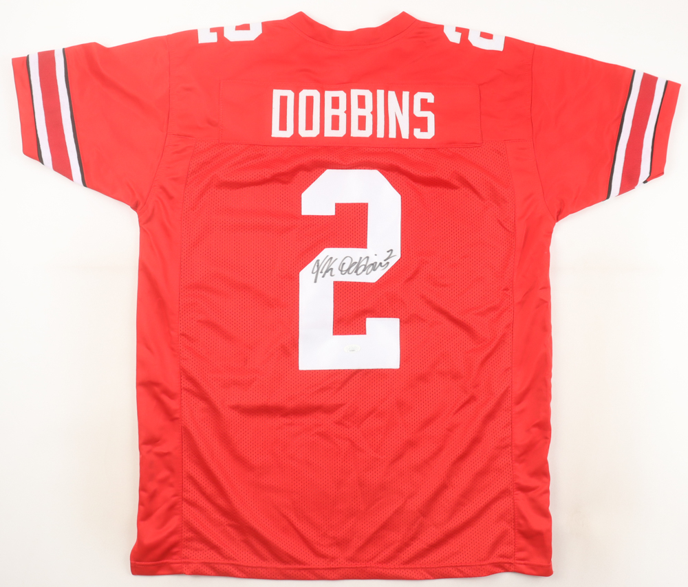 Custom jersey with everything sewn on, size XL. Has been hand-signed by J. K. Dobbins.