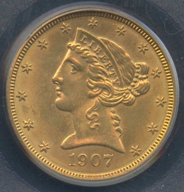1907 $5 Five Dollars Liberty Head Half Eagle Gold Coin (PCGS MS 62)