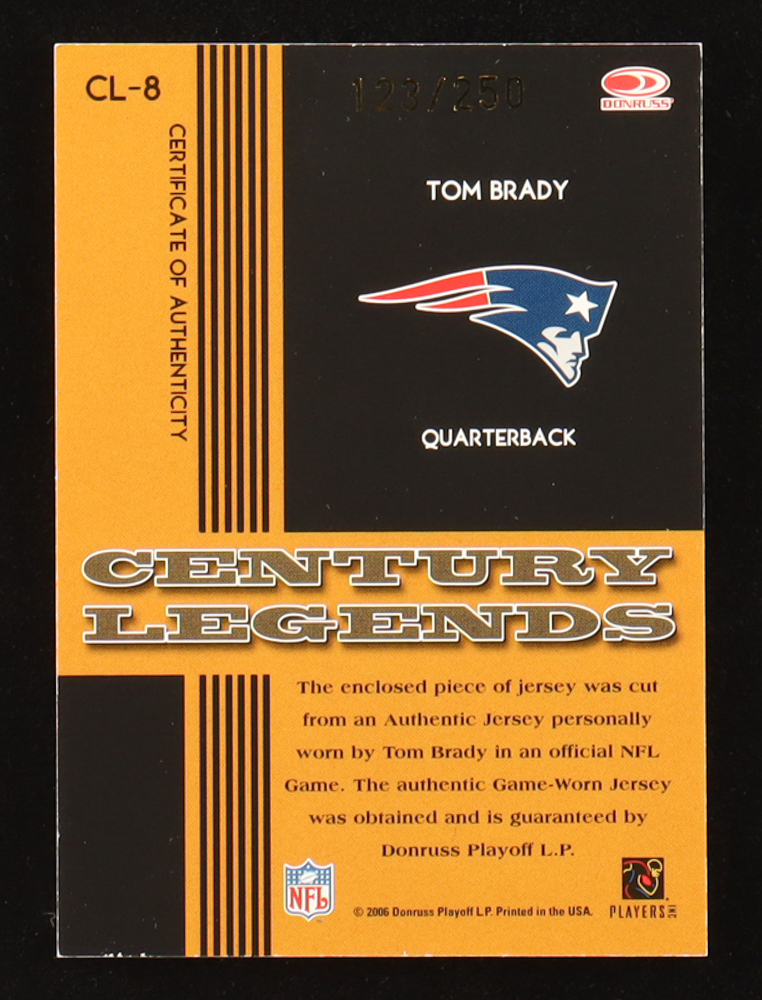 Tom Brady 2006 Donruss Threads Century Legends Materials #8 #123/250
