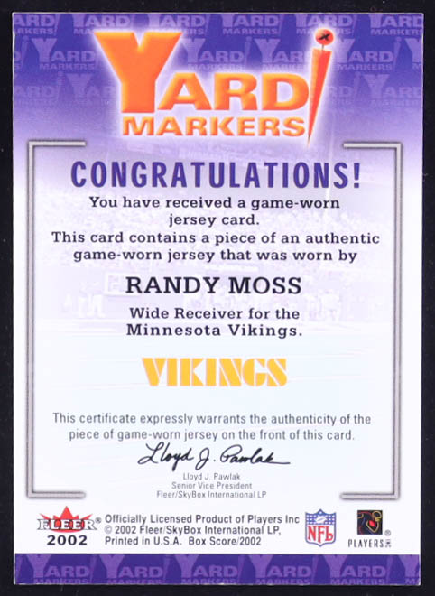 Randy Moss 2002 Fleer Box Score Yard Markers Jerseys #15