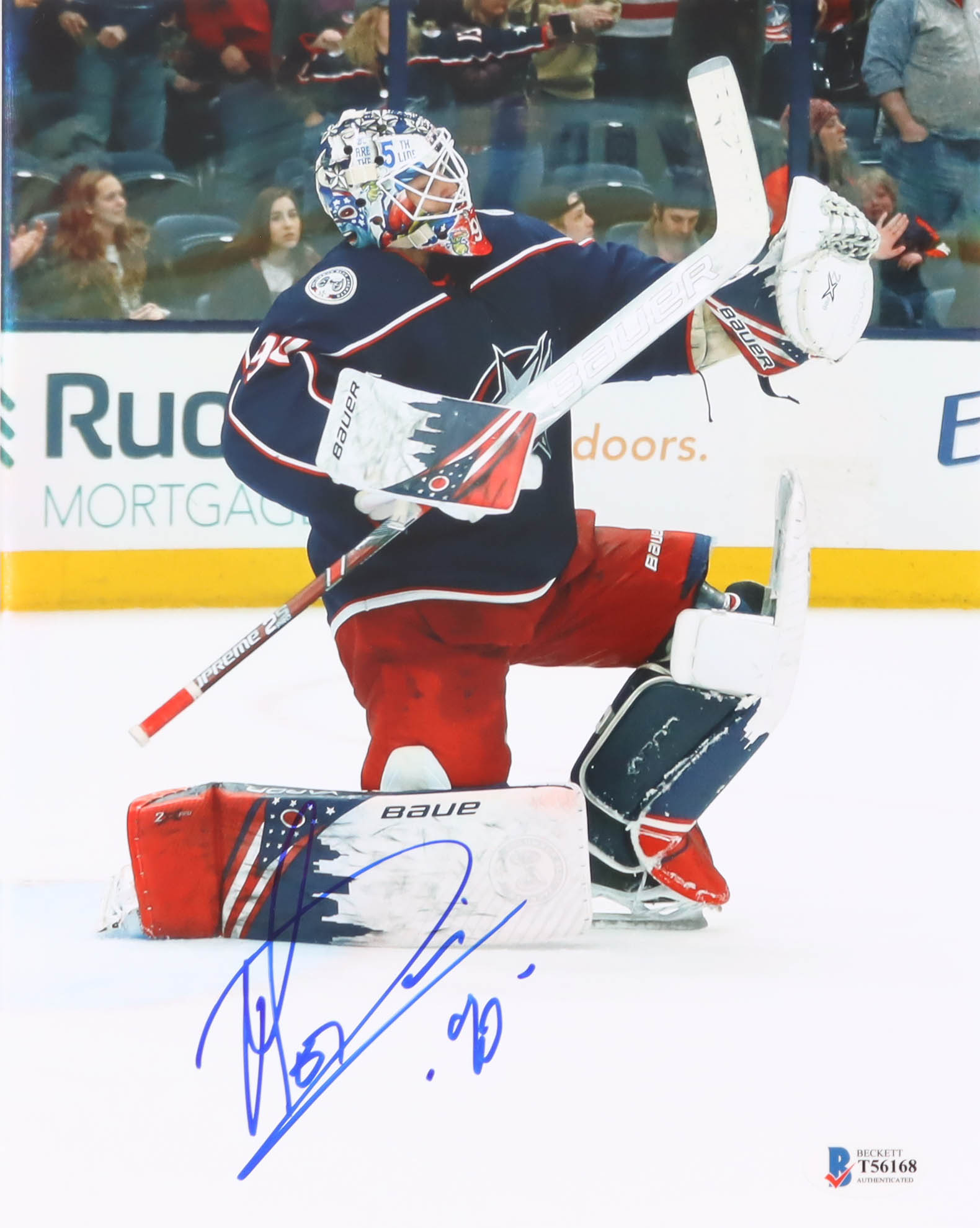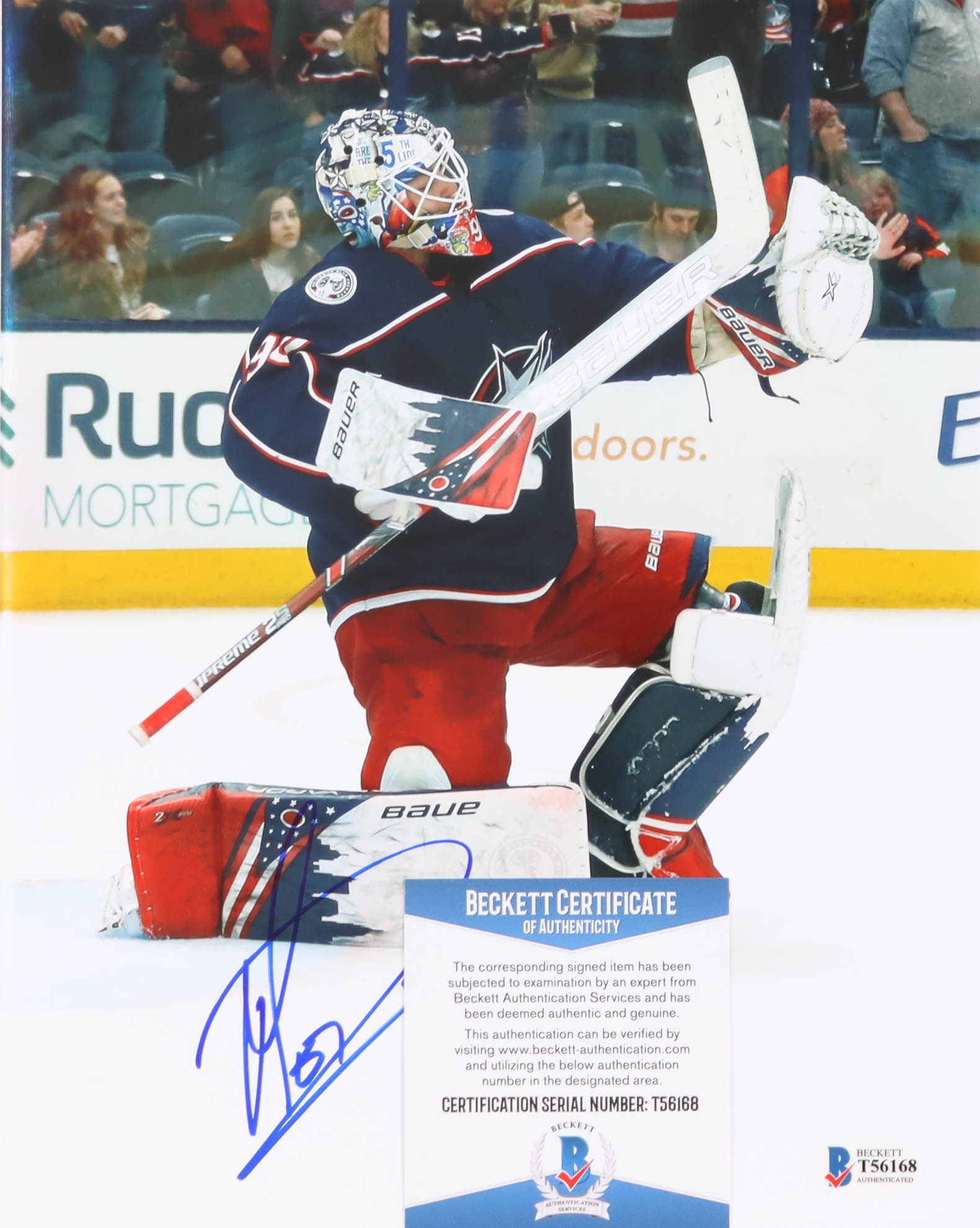 Photo measures 8" x 10" in size and has been hand-signed by Elvis Merzlikins (Columbus Blue Jackets).