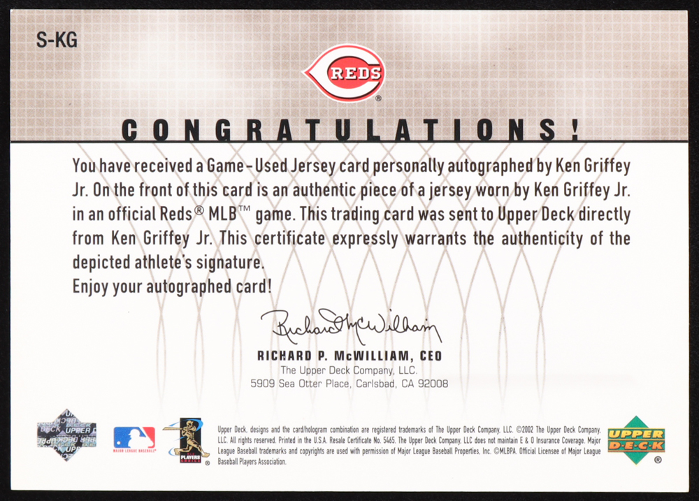 Ken Griffey Jr. 2003 Upper Deck Signed Game Jerseys #KG #097/350
