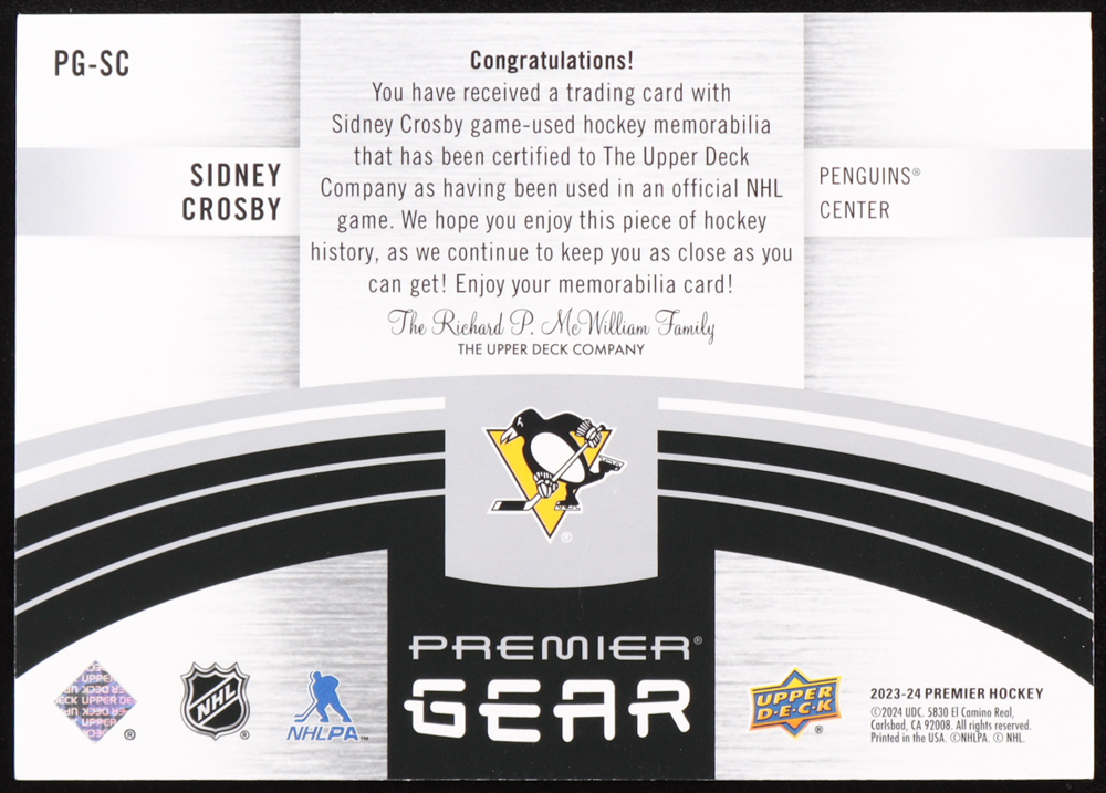 Sidney Crosby 2023-24 Upper Deck Premier Premier Gear Jerseys #PGSC #27/49