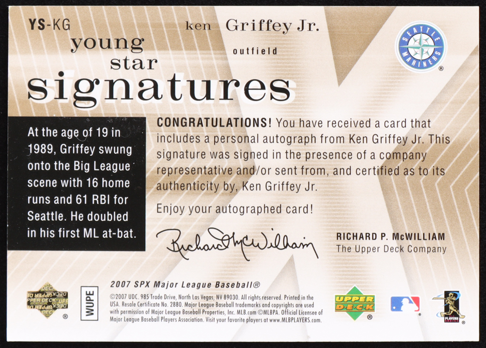 Ken Griffey Jr. 2007 SPx Young Stars Signatures #KG