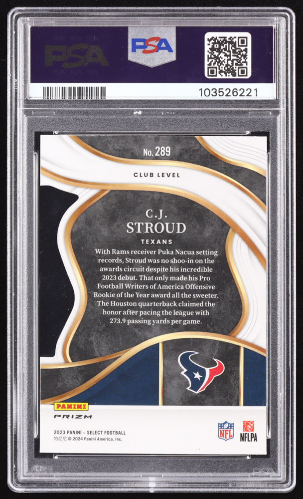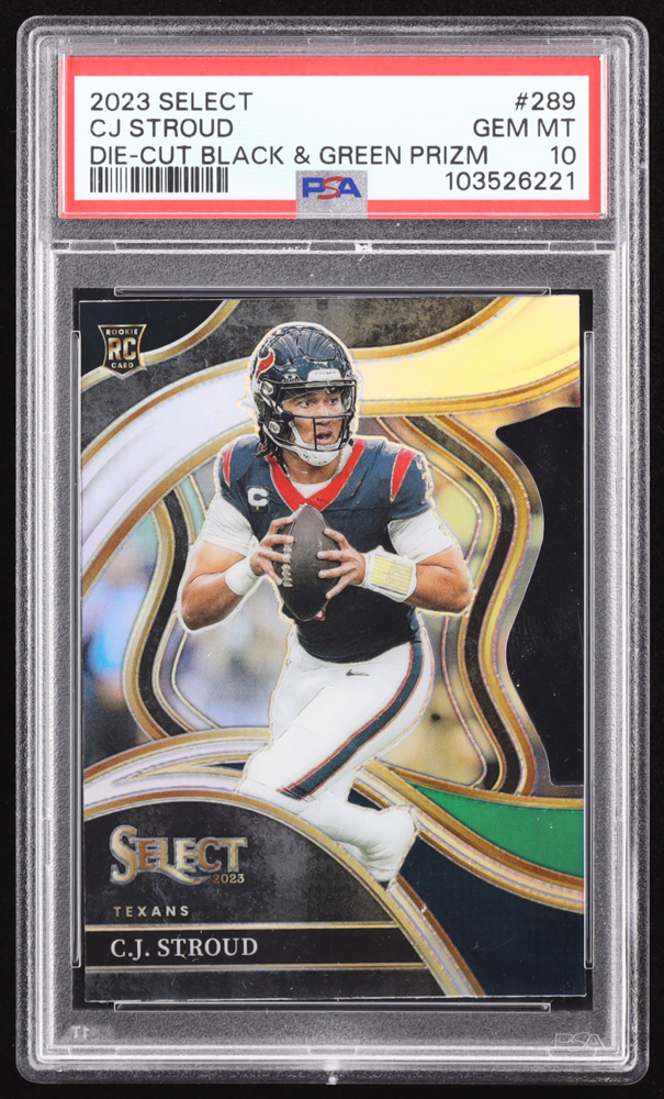CJ Stroud 2023 Select Prizm Black and Green Die Cut #289 RC (PSA 10)