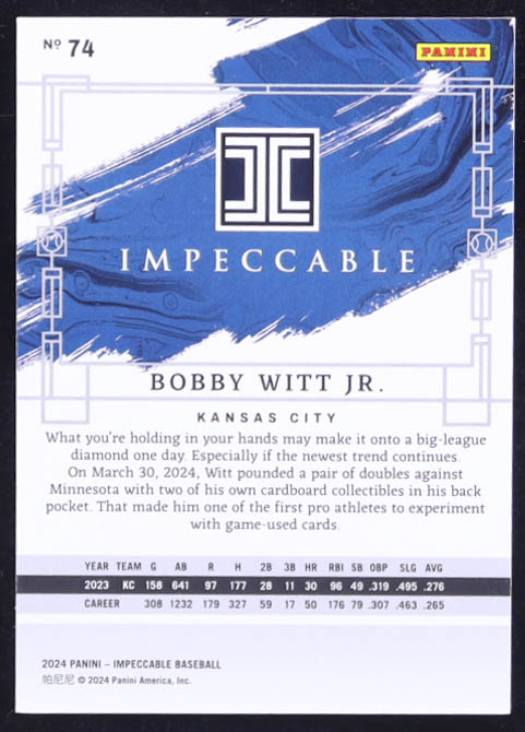 Bobby Witt Jr. 2024 Panini Impeccable Holo Gold #74 #6/10