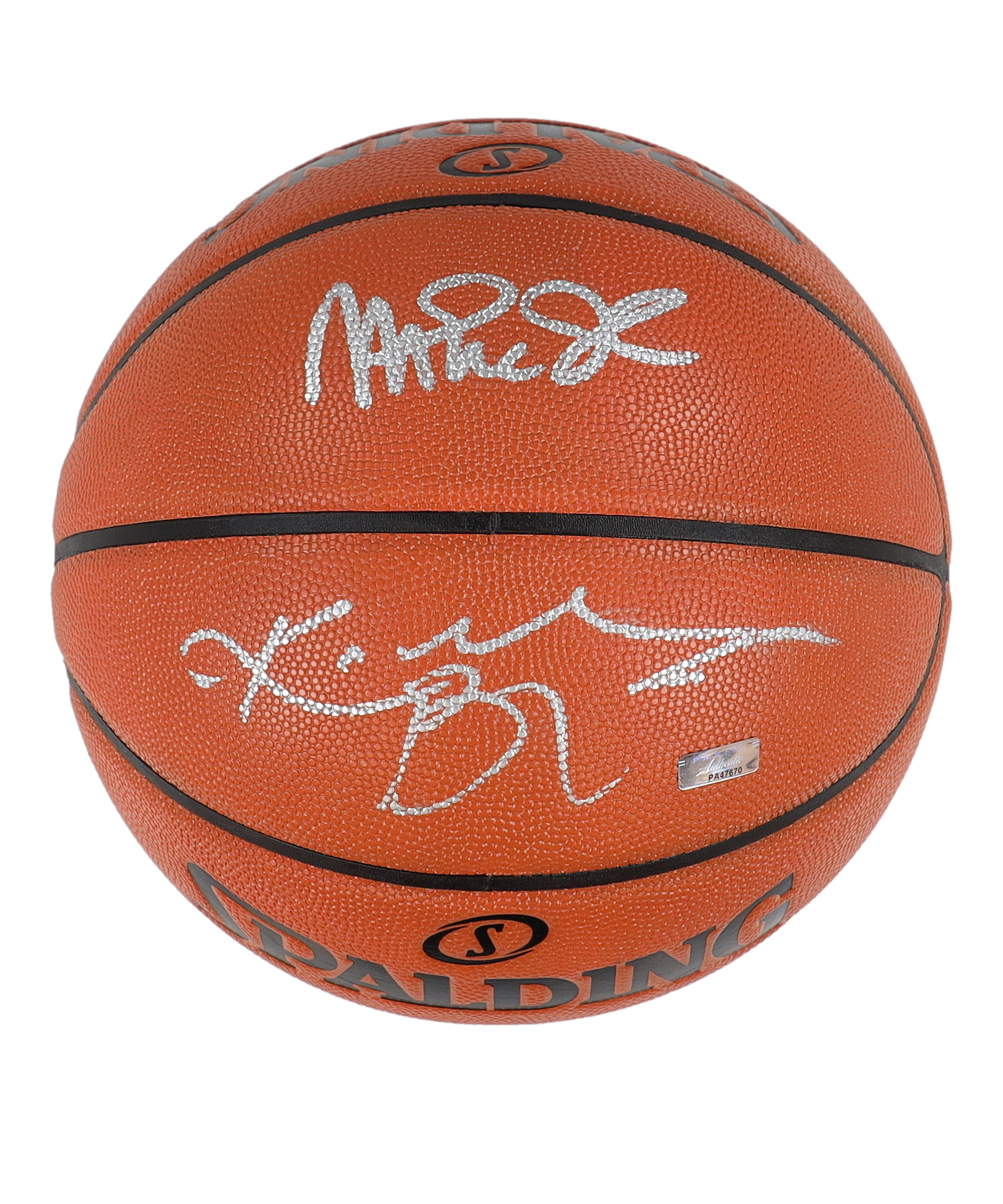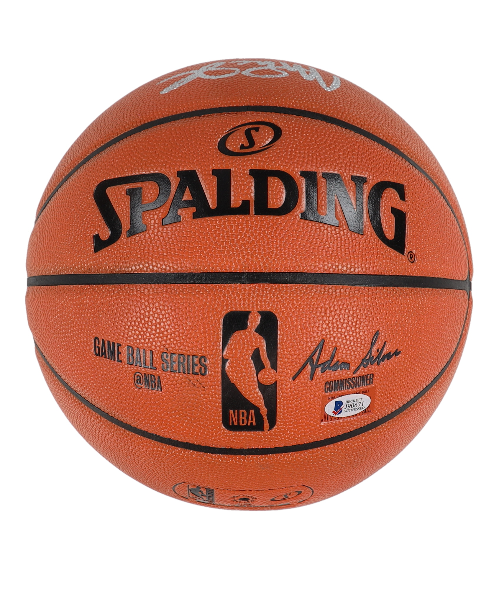 Spalding Game Ball Series NBA basketball. Hand-signed by Kobe Bryant (D. 2020, Los Angeles Lakers, HOF) and Magic Johnson (HOF).