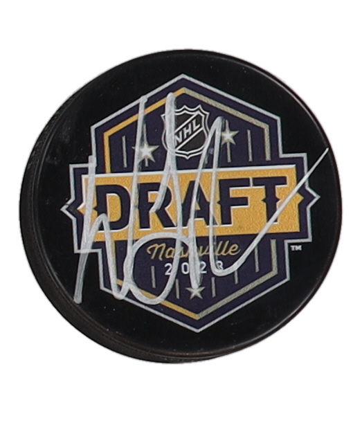 Will Smith Signed 2023 NHL Draft Logo Hockey Puck (JSA)