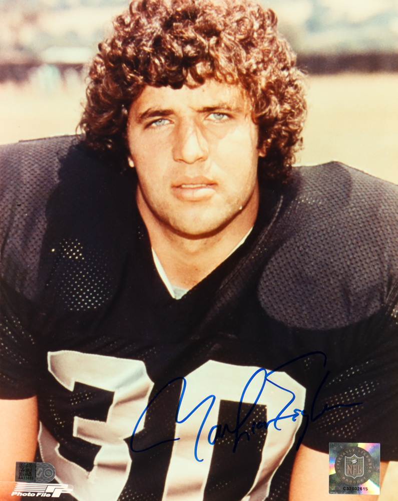 Photo measures 8" x 10" in size. Hand-signed by Mark van Eeghen (Oakland Raiders).