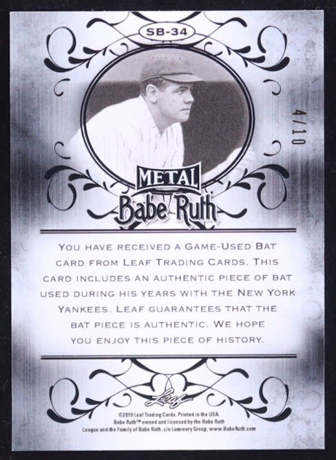 Babe Ruth 2019 Leaf Metal Babe Ruth Collection Bats #SB34 #4/10