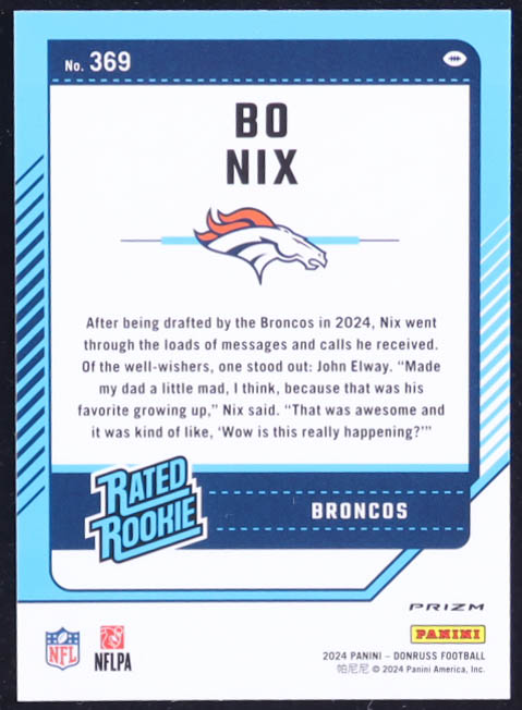 Bo Nix 2024 Donruss Optic Rated Rookies Preview Pink #369 RC