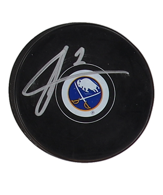 Ukko-Pekka Luukkonen Signed Sabres Logo Hockey Puck (JSA)