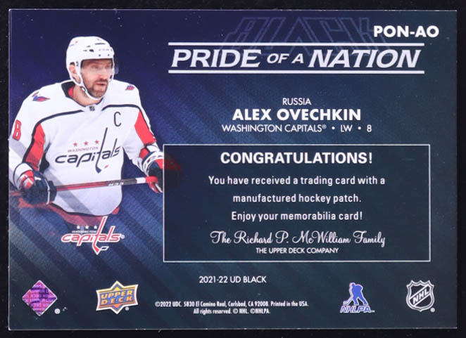Alex Ovechkin 2021-22 UD Black Pride of a Nation #PONAO #14/99