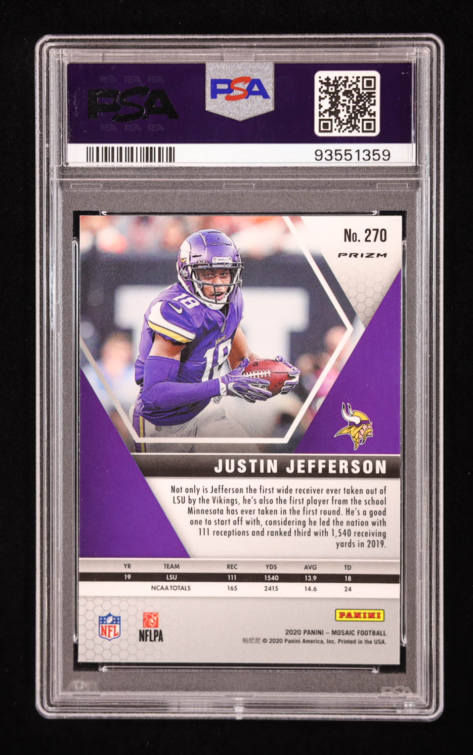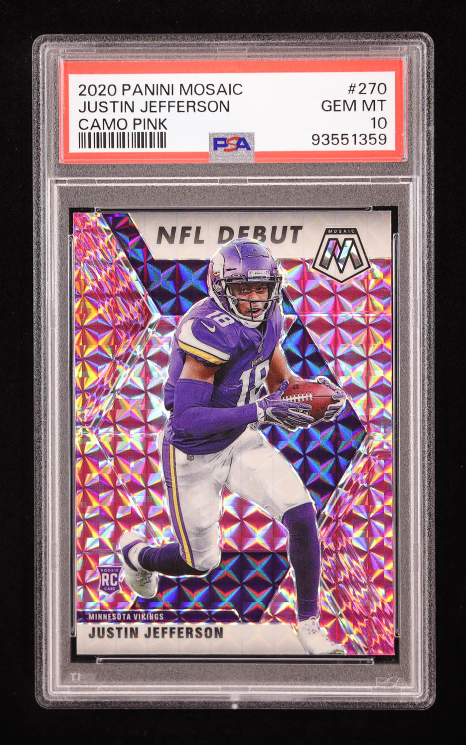 Justin Jefferson 2020 Panini Mosaic Mosaic Camo Pink #270 DEB RC (PSA 10)