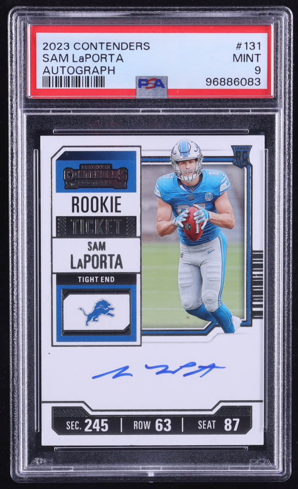 Sam LaPorta 2023 Panini Contenders #131 Autograph RC EXCH (PSA 9)