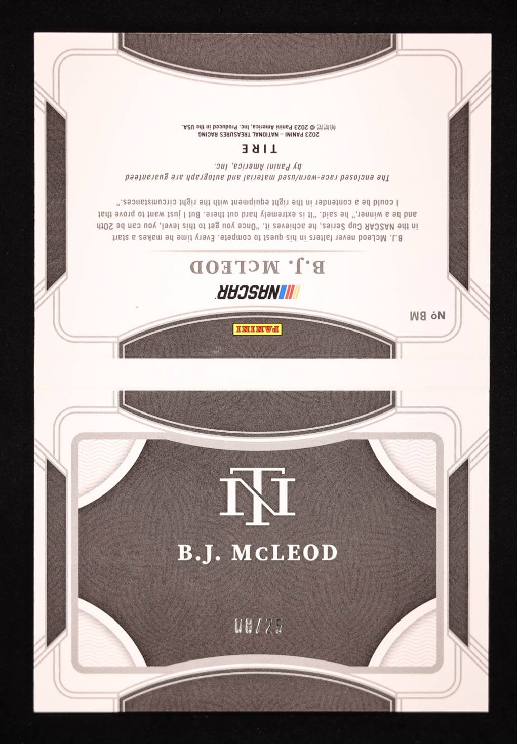 B.J. McLeod 2023 Panini National Treasures Jumbo Tire Signature Booklet #35 #08/25