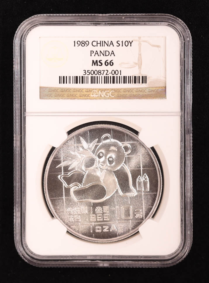 1989 China Panda 10 Yuan - 1 Ounce .999 Fine Silver Coin (NGC MS66)