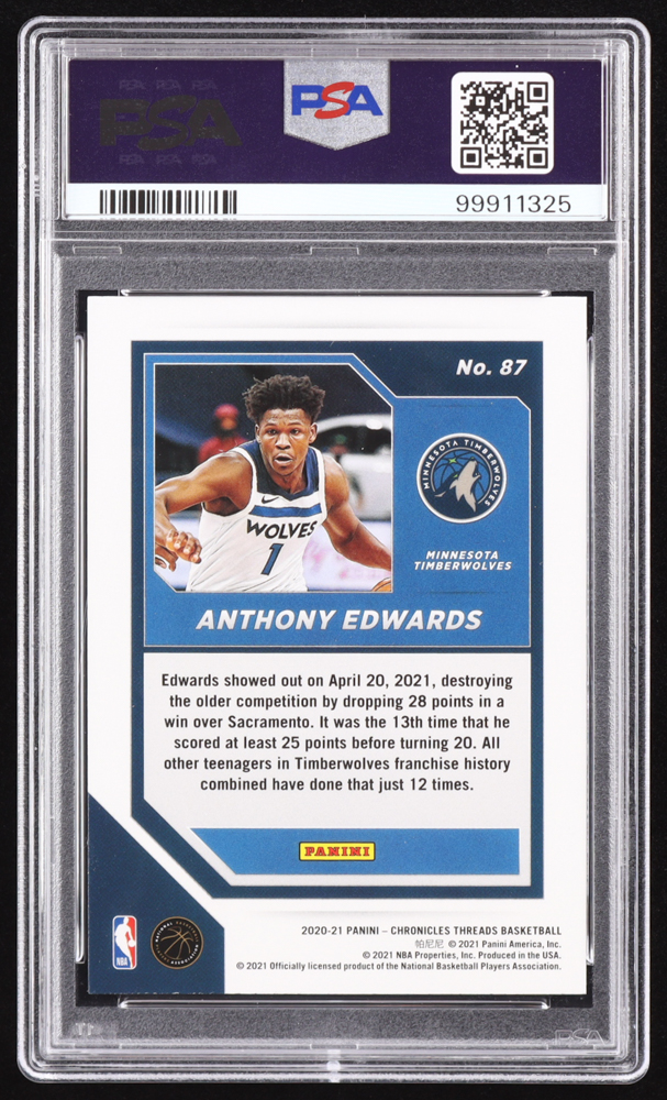 Anthony Edwards 2020-21 Panini Chronicles Threads #87 RC (PSA 10)