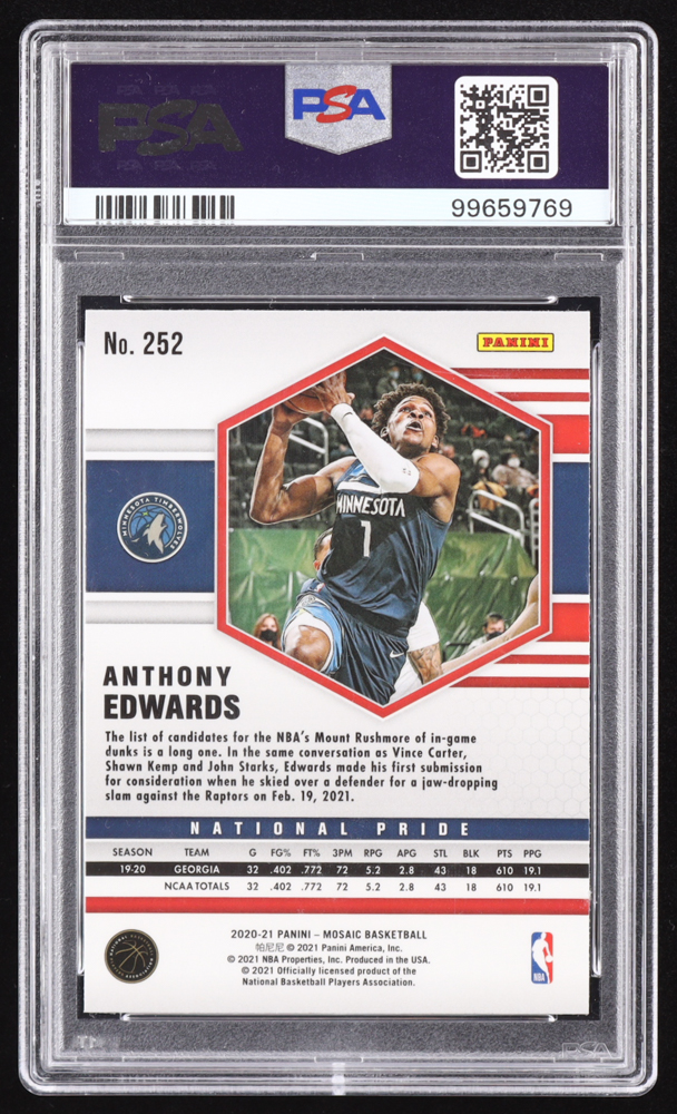 Anthony Edwards 2020-21 Panini Mosaic #252 RC (PSA 10)