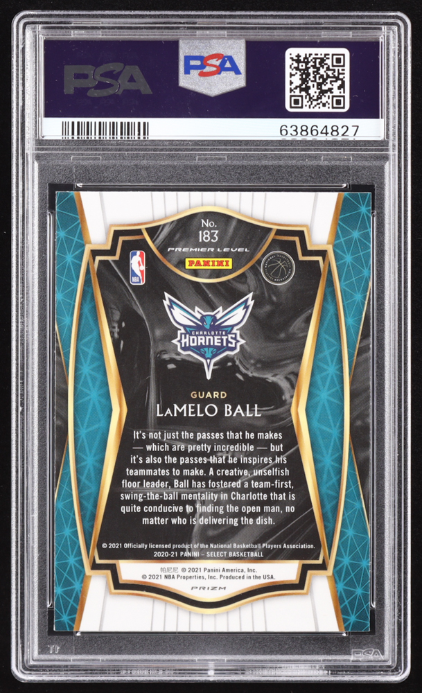 LaMelo Ball 2020-21 Select Prizms Red White Green Ice #183 RC (PSA 9)