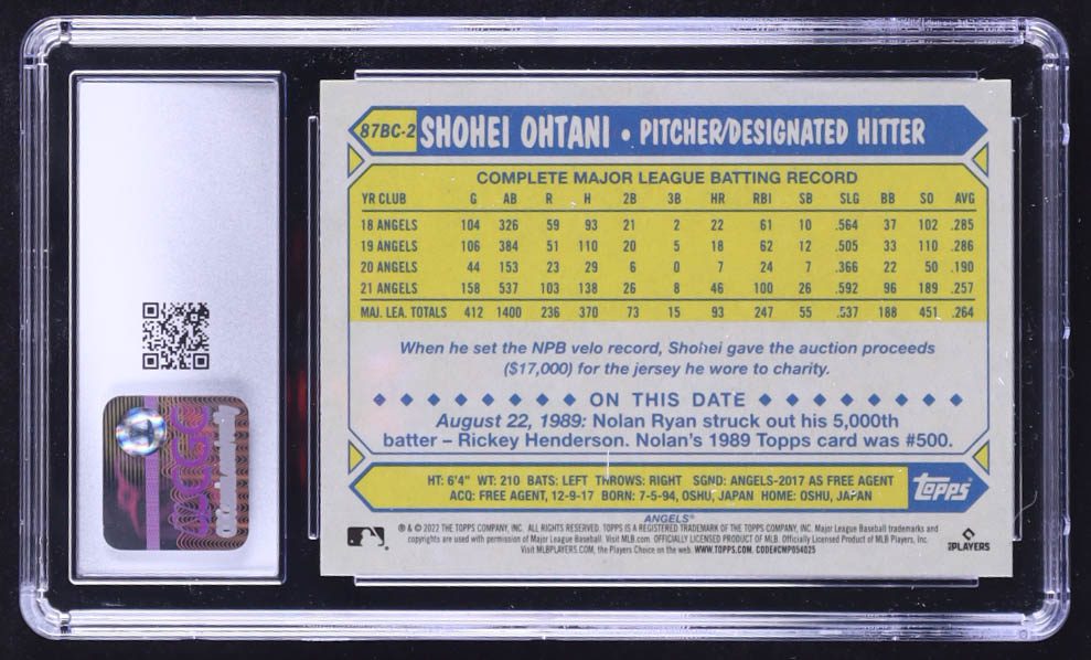 Shohei Ohtani 2022 Topps Chrome '87 Topps #87BC2 (CGC 10)