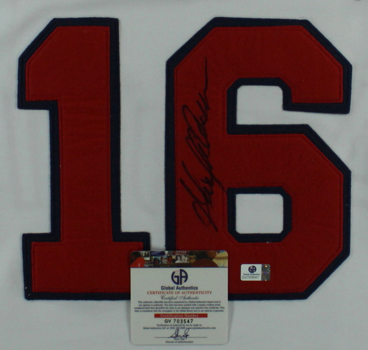 Cooperstown Collection on-field style jersey. Everything sewn on, size XL. Hand-signed in felt-tip pen by Garrett Anderson. Autograph includes an official Global Authentics (GA) Hologram and matching COA for authenticity purposes.