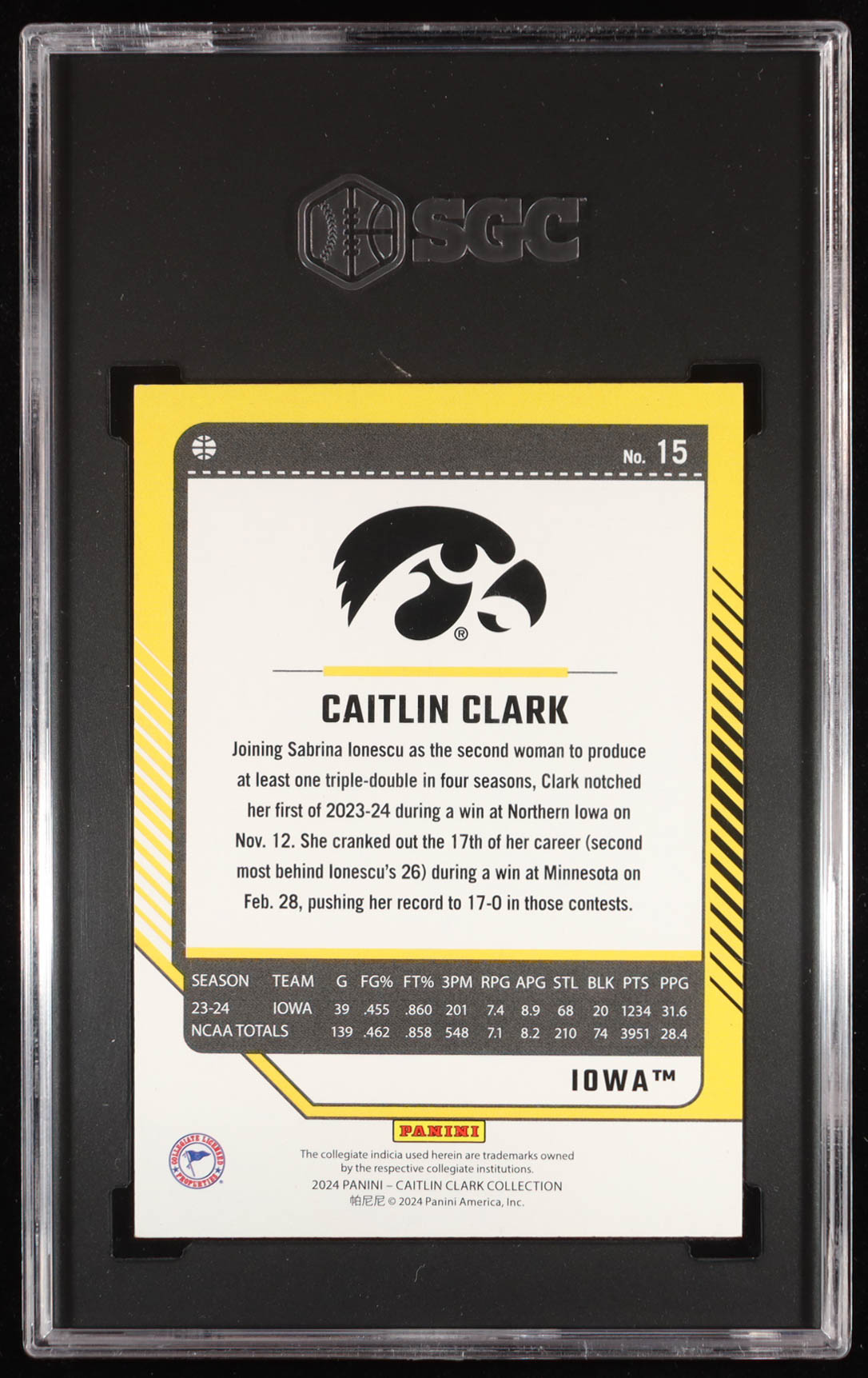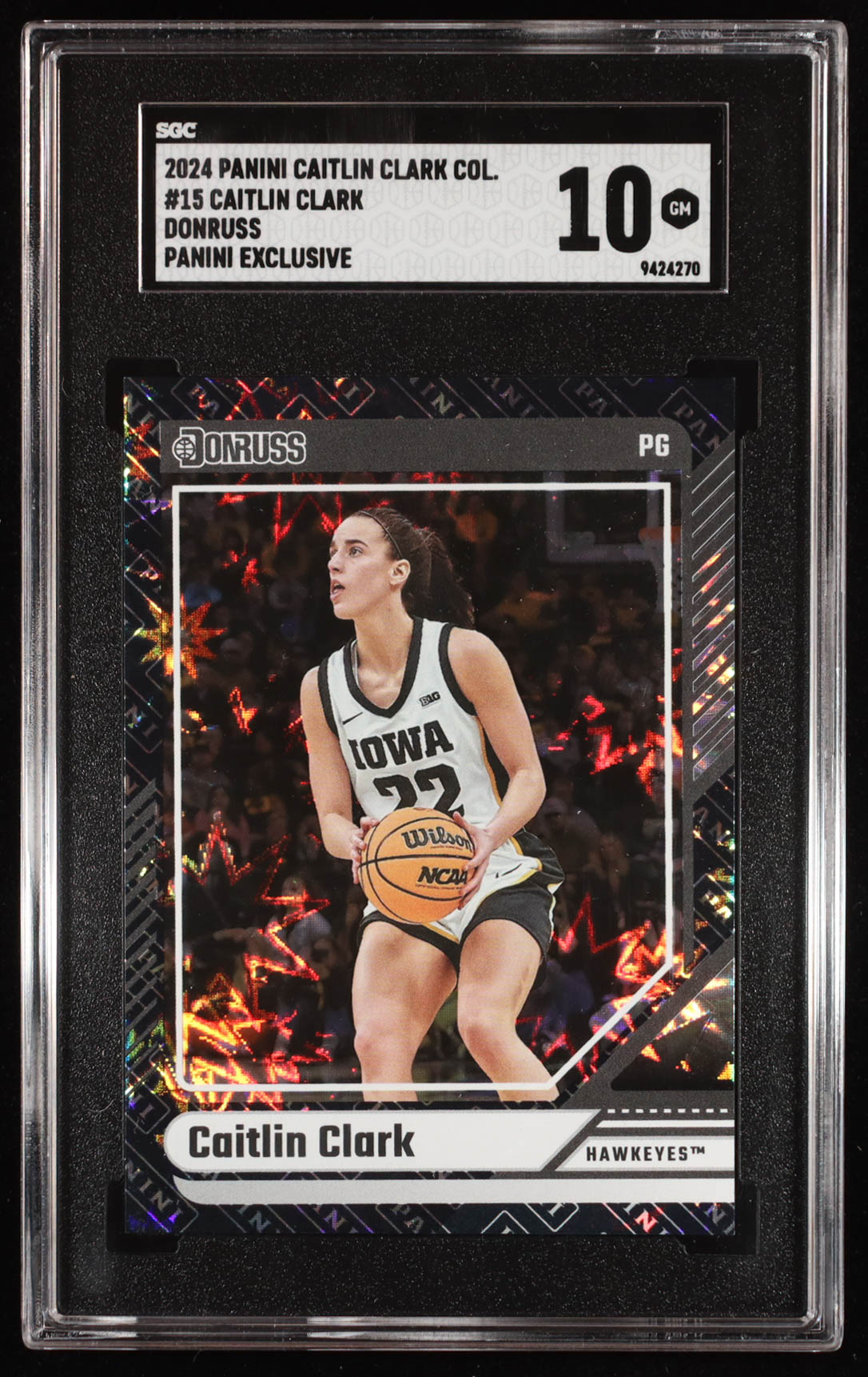 Caitlin Clark 2024 Panini Caitlin Clark Collection Donruss Panini Exclusive #15 RC (SGC 10)